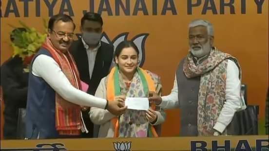 उप मुख्यमंत्री केशव प्रसाद तथा प्रदेश अध्यक्ष स्वतंत्र देव सिंह ने अपर्णा को दिलाई भाजपा की सदस्यता